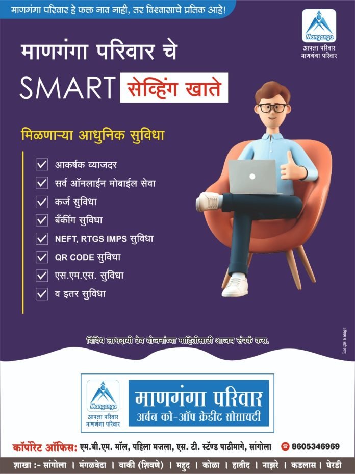 सांगोला परिसर आणि राज्यातील बातम्या आणि माहिती सर्वात प्रथम मिळवण्यासाठी तुमच्या Whatsapp ग्रुपवर 78418 55301 हा आमचा नंबर समाविष्ट करा.