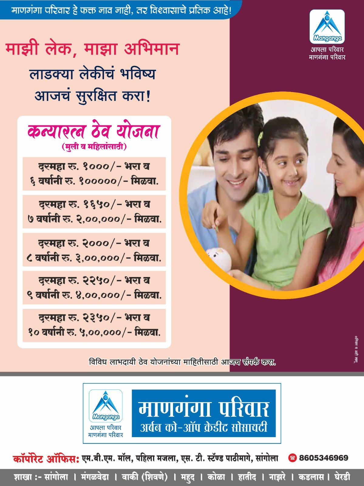 सांगोला परिसर आणि राज्यातील बातम्या आणि माहिती सर्वात प्रथम मिळवण्यासाठी तुमच्या Whatsapp ग्रुपवर 78418 55301 हा आमचा नंबर समाविष्ट करा.