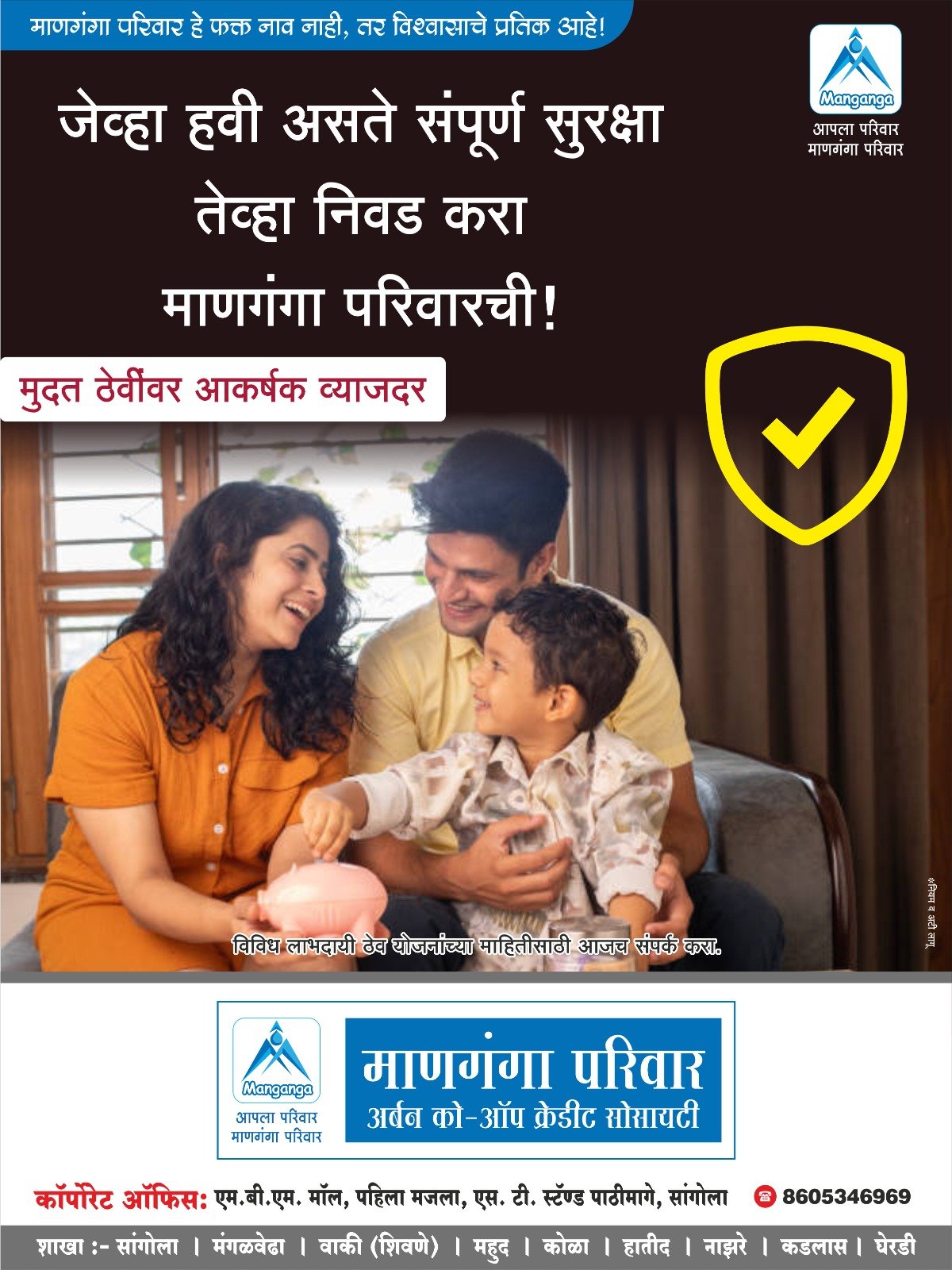 सांगोला परिसर आणि राज्यातील बातम्या आणि माहिती सर्वात प्रथम मिळवण्यासाठी तुमच्या Whatsapp ग्रुपवर 78418 55301 हा आमचा नंबर समाविष्ट करा.