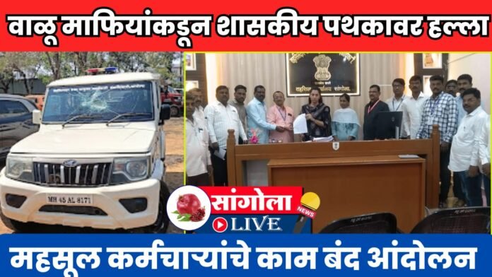 सांगोला (प्रतिनिधी): तालुक्यातील जवळा परिसरात वाळू उपशावर कारवाई करण्यासाठी गेलेल्या महसूल विभागाच्या पथकावर वाळू माफियांनी भीषण हल्ला केल्याची धक्कादायक घटना आज पहाटे घडली आहे. या हल्ल्यात दोन कर्मचारी जखमी झाले असून, सरकारी वाहनाची मोठ्या प्रमाणावर तोडफोड करण्यात आली आहे.