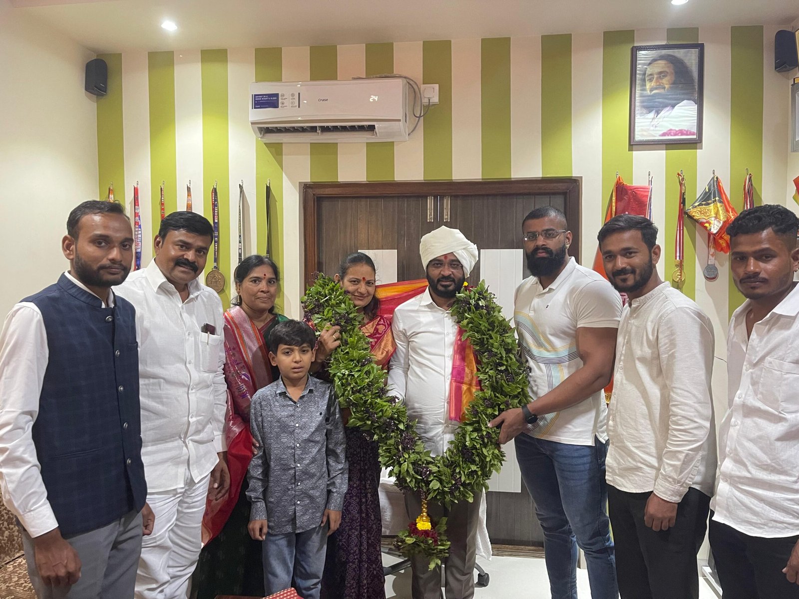 अमोल खताळ पाटील यांनी संकेत काळे यांनी विविध स्पर्धांमध्ये मिळवलेल्या यशाबद्दल अभिनंदन केले आणि पुढील कारकिर्दीसाठी शुभेच्छा दिल्या. काळे कुटुंबाच्या भेटीनंतर खताळ पाटील यांनी पंढरपूरकडे पांडुरंगाच्या दर्शनासाठी प्रयाण केले.