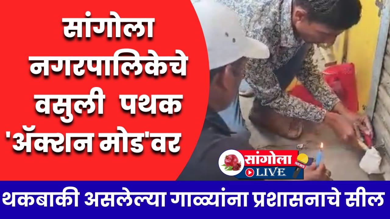 सांगोला (प्रतिनिधी): सांगोला नगरपरिषद प्रशासनाने थकबाकीदारांविरुद्ध आता आक्रमक पवित्रा घेतला असून, वारंवार सूचना देऊनही थकबाकी न भरणाऱ्या गाळेधारकांवर थेट जप्तीची कारवाई सुरू केली आहे. आज भाजी मंडई लगतच्या एका गाळ्याला प्रशासनाने सील ठोकले असून, या कारवाईमुळे थकबाकीदारांचे धाबे दणाणले आहेत.