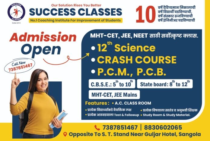 जेइइ (मेन) 2026 मध्ये सांगोल्याच्या सक्सेस क्लासेसचे उज्ज्वल यश