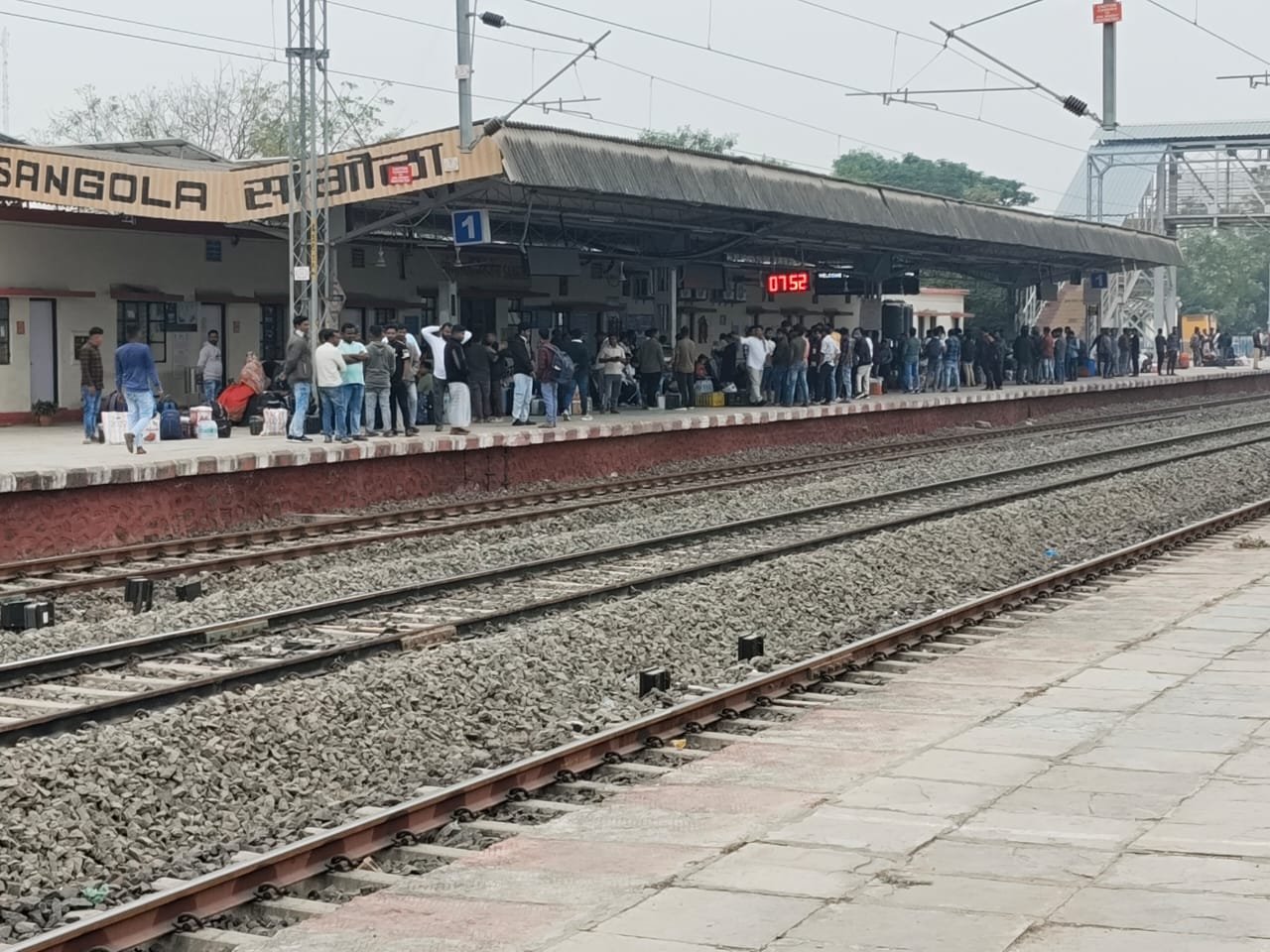 सांगोला स्टेशन वरून धनबादकडे रेल्वेने जाण्याकरता प्रवाशांची मोठ्या प्रमाणात गर्दी होत आहे.