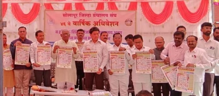 सांगोला (अमर कुलकर्णी ):माढा तालुक्यातील श्री संत सावता माळी यांची पुण्यनगरी अरण येथील यशोदा गुरुकुल सभागृहात सांगोला तालुका ग्रंथालय संघाचे संस्थापक अध्यक्ष,व महाराष्ट्र राज्य ग्रंथालय संघाचे विद्यमान कार्याध्यक्ष ग्रंथमिञ गुलाबराव पाटील यांचे मार्गदर्शनात गेली 18 वर्षे नियमित निघणारी ग्रंथालय दिनदर्शिका 2026 प्रकाशन सोहळा मा.आमदार रणजितसिंह मोहिते- पाटील व उपस्थित मान्यवरांच्या शुभहस्ते उत्साही वातावरणात संपन्न झाले.